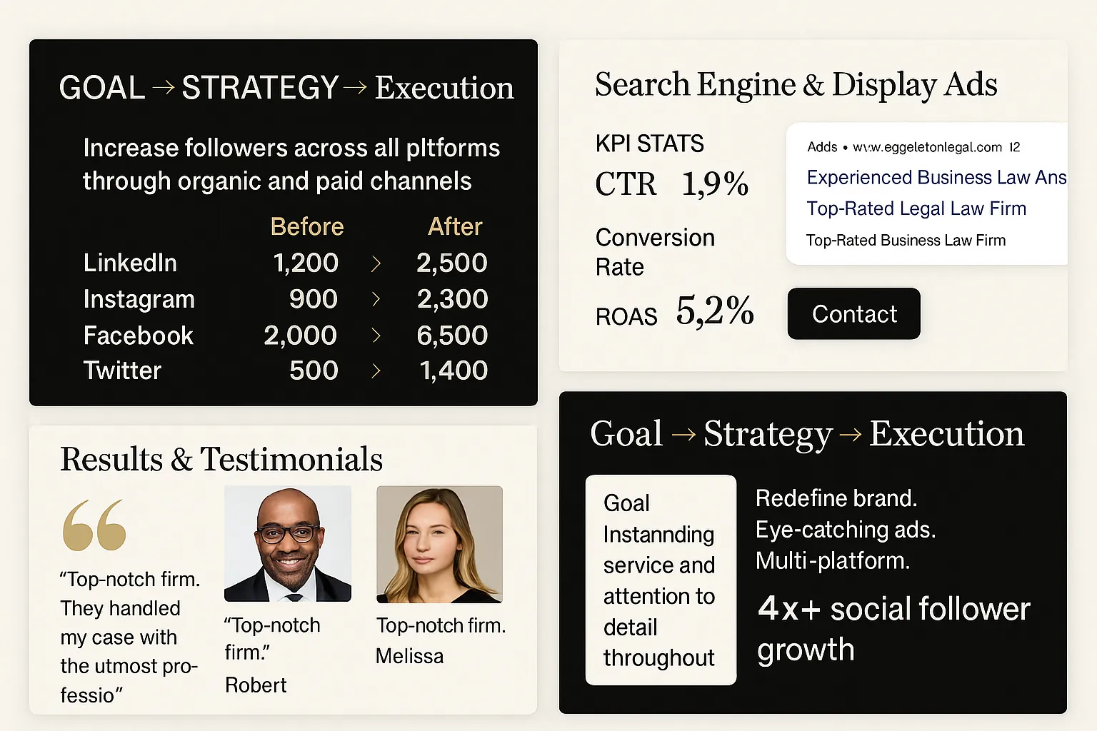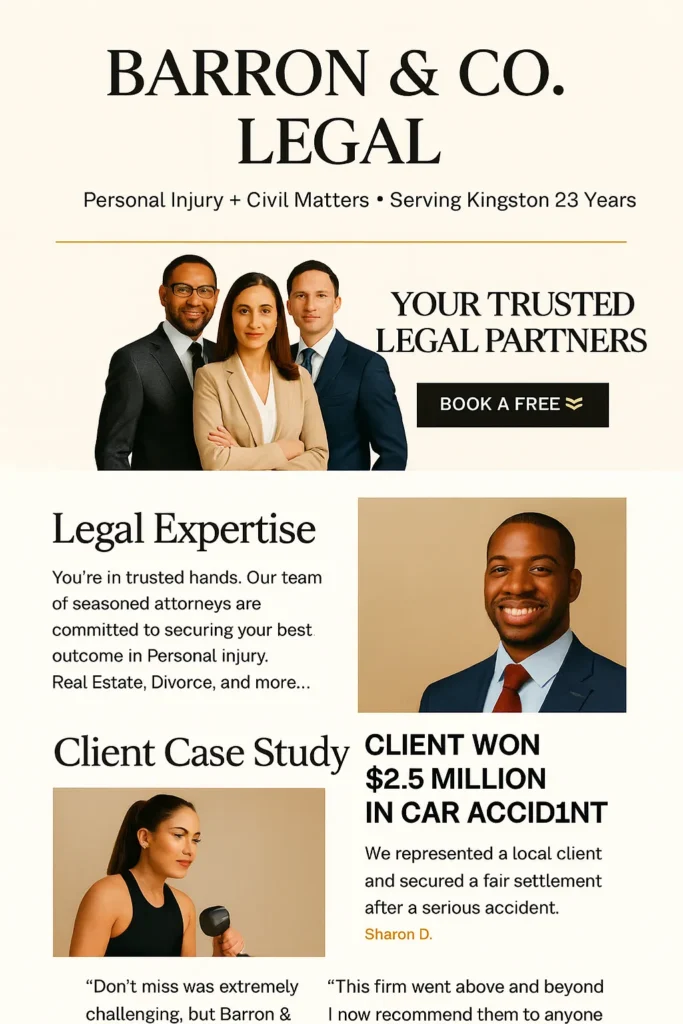 Barron & Co. Legal, a Toronto-based corporate and employment law firm, set out to reposition itself as a premium boutique brand while significantly increasing qualified inbound corporate leads. The goal was to compete with larger firms by modernizing its digital presence across both paid and organic channels.