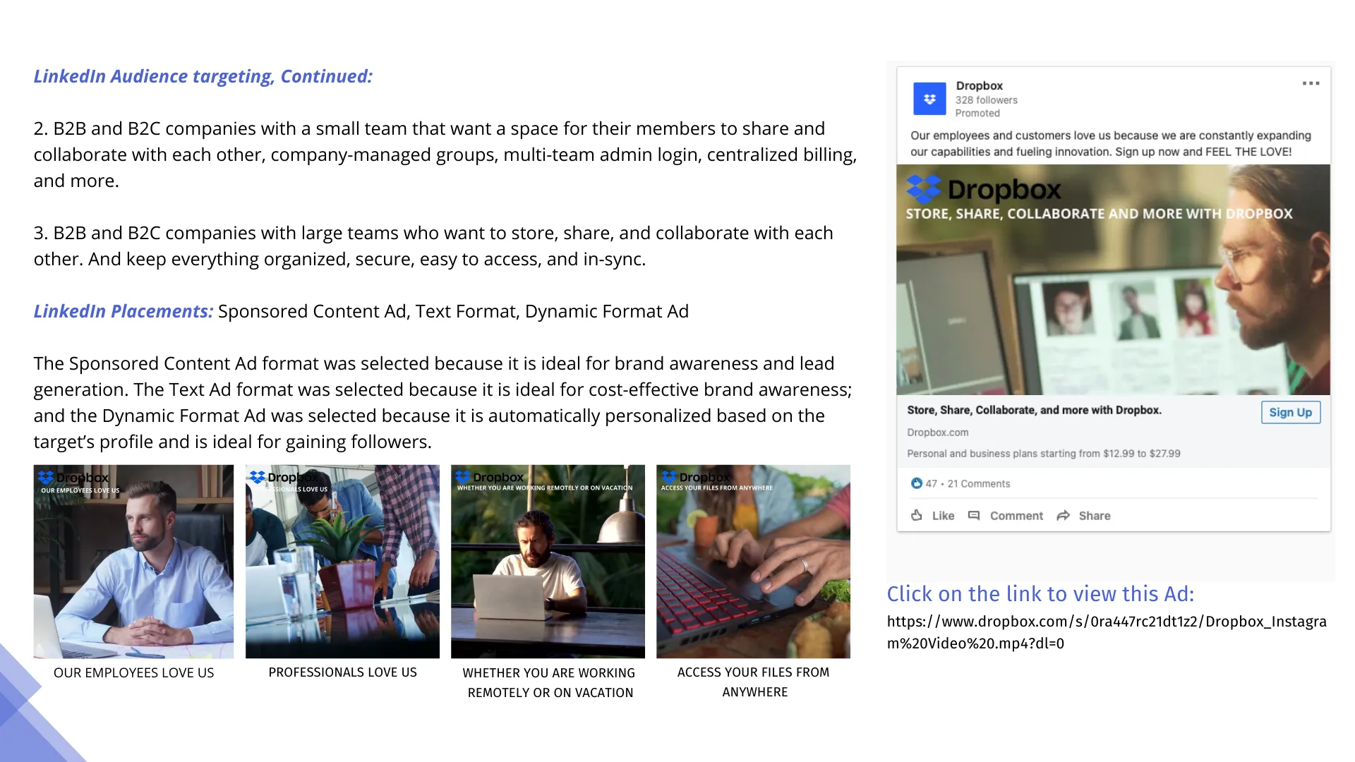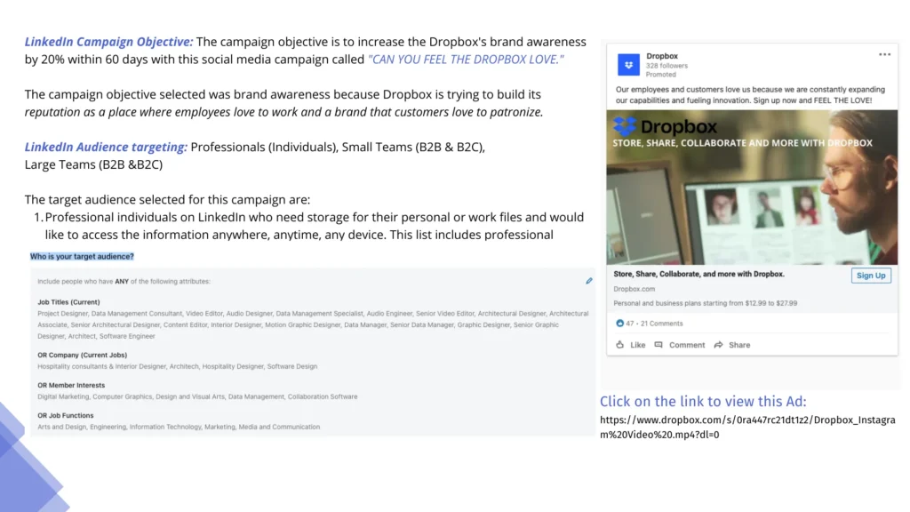 Executed a targeted LinkedIn campaign that boosted engagement and positioned Dropbox as a trusted partner for business collaboration.